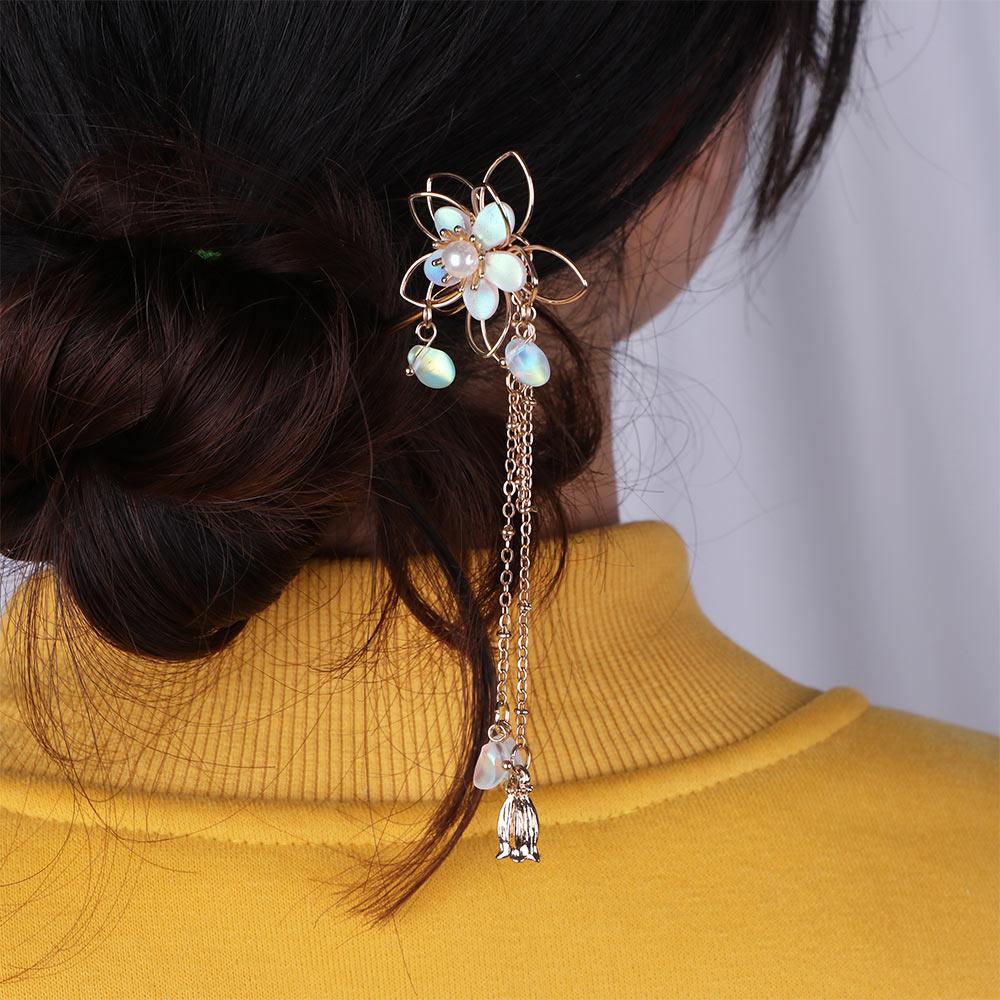 Длинная кисточка ручная работа китайский для женщин цинк цинковый сплав аксессуары для волос цветок заколка для волос ханьфу палочка для волос
