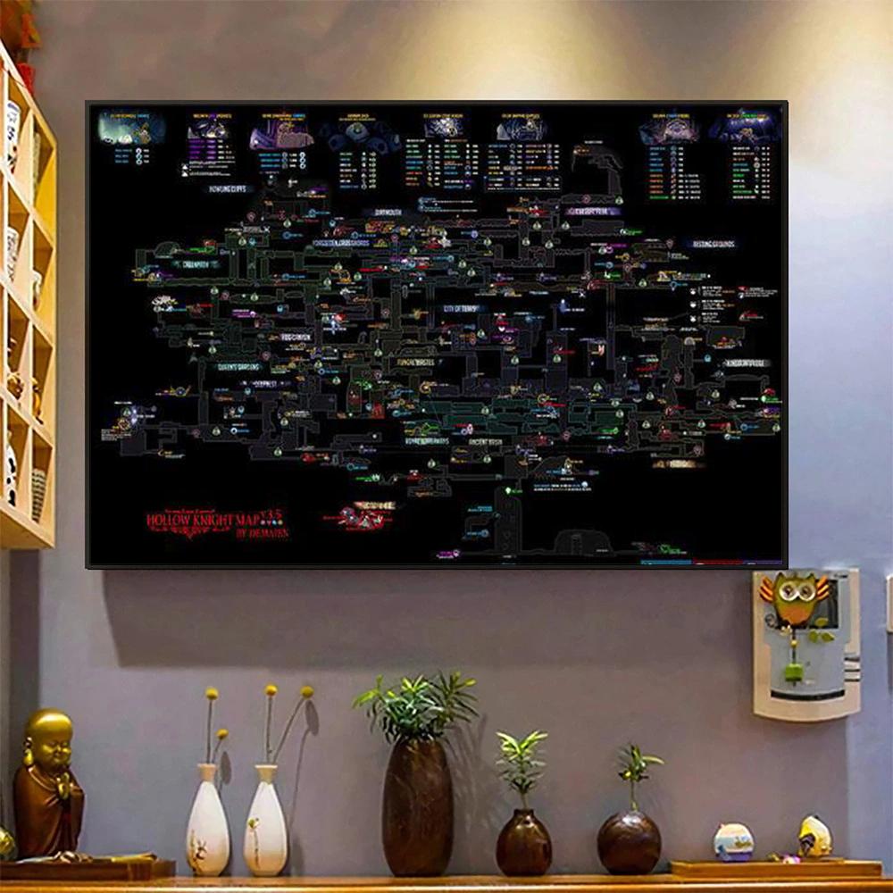 Игровой постер Декоративная картина Hollow Knight Карта HD Холст Картина Халлоунеста Постер Настенное искусство Картины Домашний декор