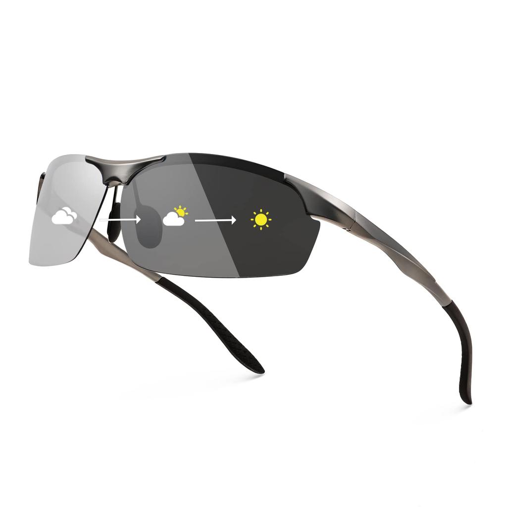 Поляризованные фотохромные солнцезащитные очки UV400 Овальные Квадратные Маленькие Ободковая оправа из сплава Легкие Спортивные Велосипедные Рыбалка Вождение B1087 [FEISEDY] Мужские