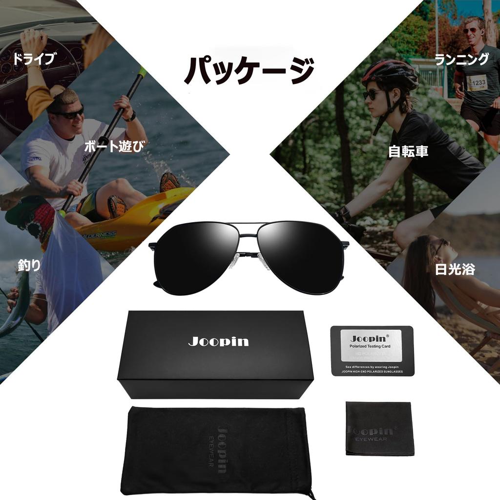 [Содержимое упаковки] Содержимое набора: Солнцезащитные очки JOOPIN x 1, тканевый мешочек x 1, салфетка для очков x 1, поляризационная тестовая карта x 1 включены. Мужские поляризационные солнцезащитные очки поддерживают модные выходы и не боятся яркого солнечного света.