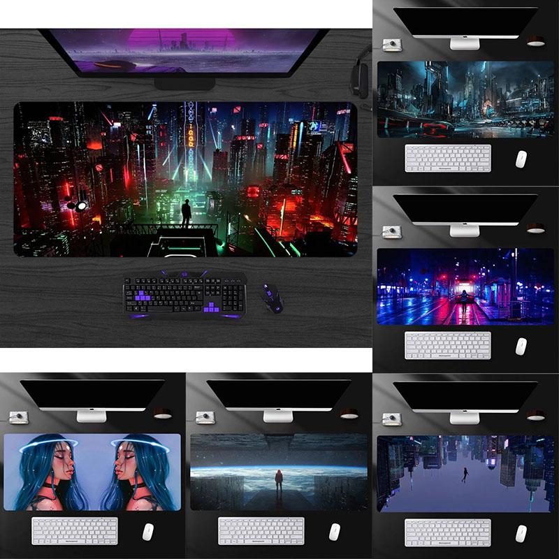 Киберпанк Игровой Коврик для Мыши Аниме Xxl Коврик для Мыши Неоновые Вывески Города Настольный Коврик Геймер Большой Коврик для Мыши Коврик для Клавиатуры Ковер для Ноутбука