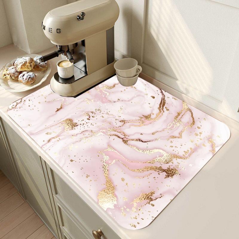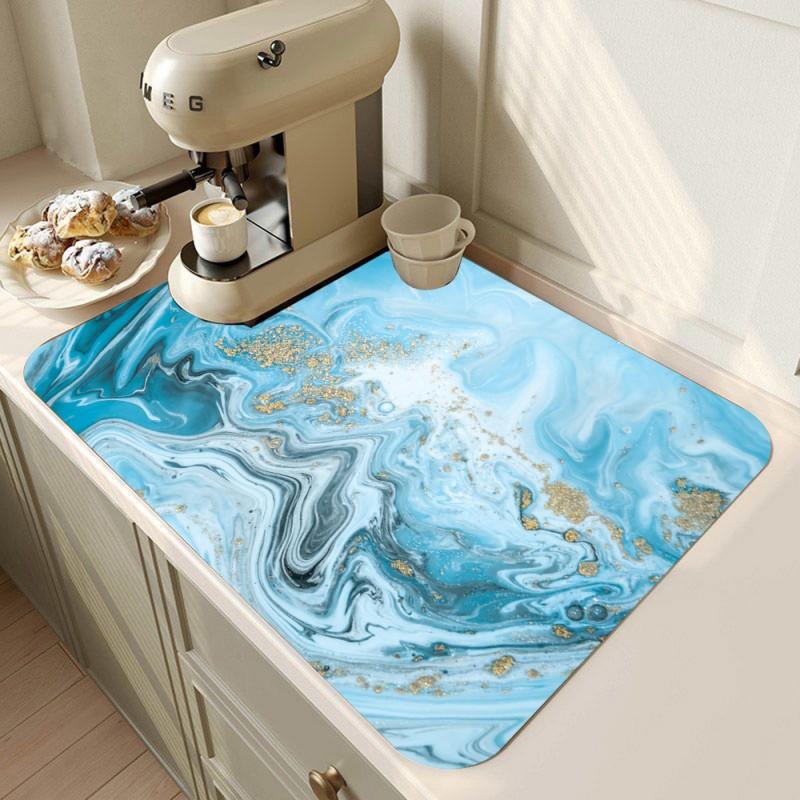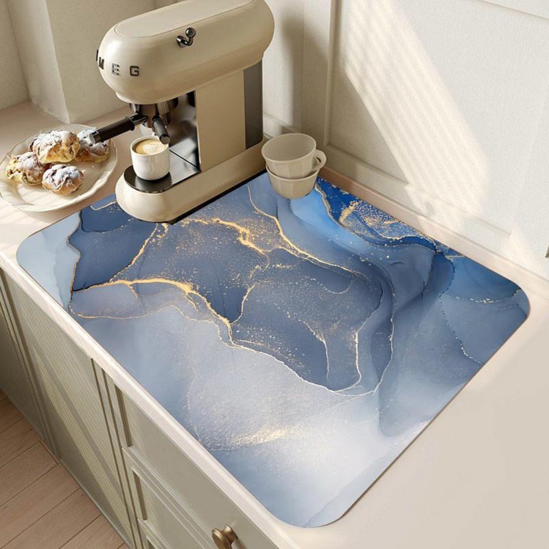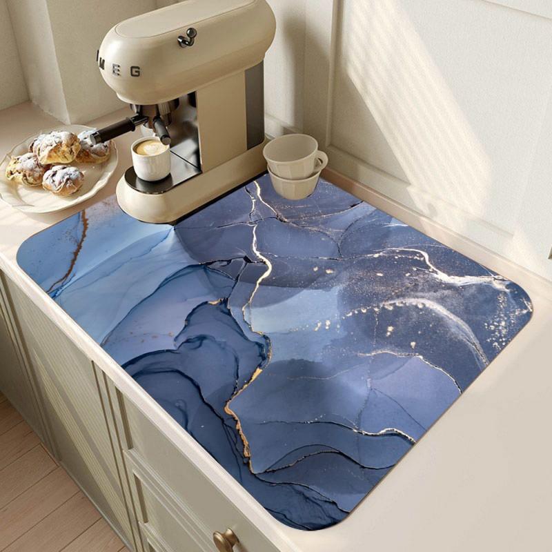 Мраморный коврик для кофеварки, коврик для сушки посуды для кухни, мраморный коврик для посуды, коврик для сушки посуды, абсорбирующий, быстросохнущий, кухонный