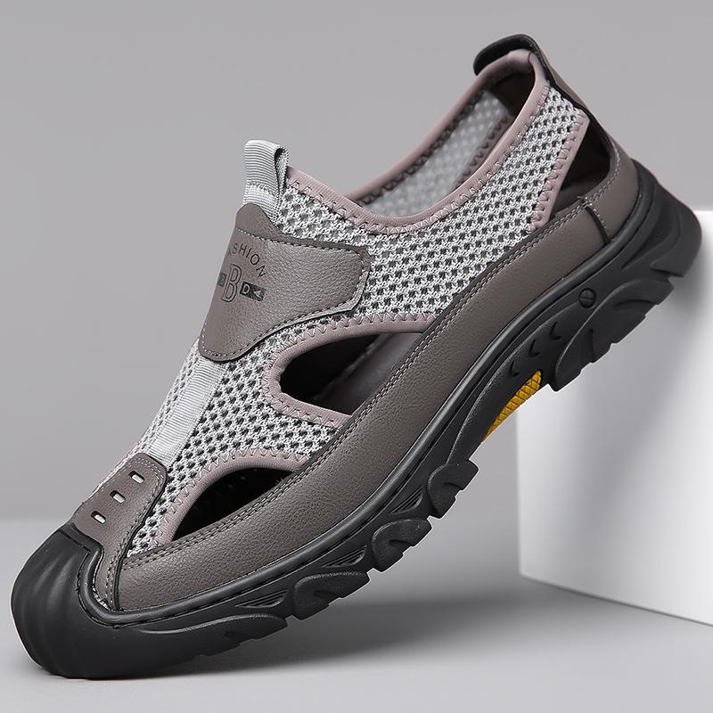 Сандалии мягкая подошва лето новые полые отверстия прохладная кожаная обувь мужская повседневная пляжная обувь мужская 2025
