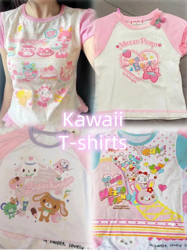 Японские Каваи Кроп-топы Мультяшный Принт Харадзюку Лолита Футболки с Коротким Рукавом Женские Y2k Эстетика Приталенная Футболка Винтаж Фейри Гранж — купить товар онлайн с бесплатной доставкой по всему миру!