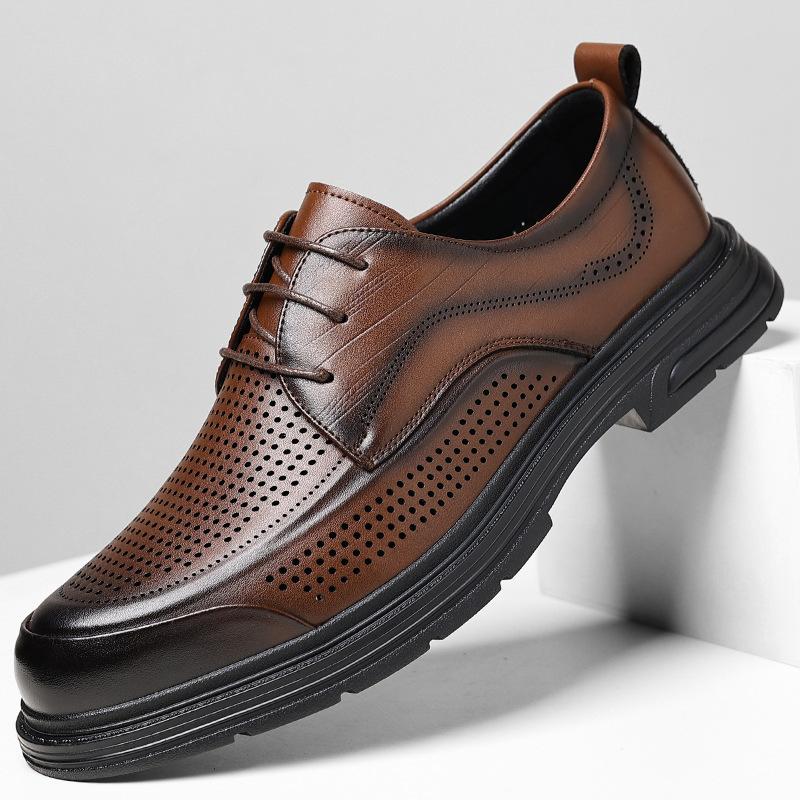Мужская обувь лето мужская кожаная обувь формальная мужская обувь полая дышащая прохладная кожаная обувь тренд обувь с отверстиями 2025