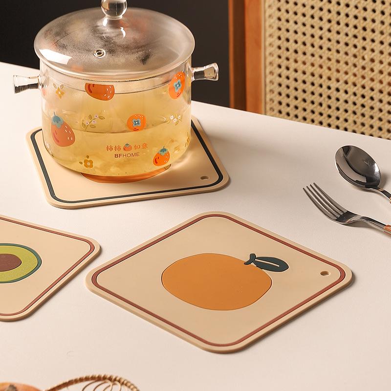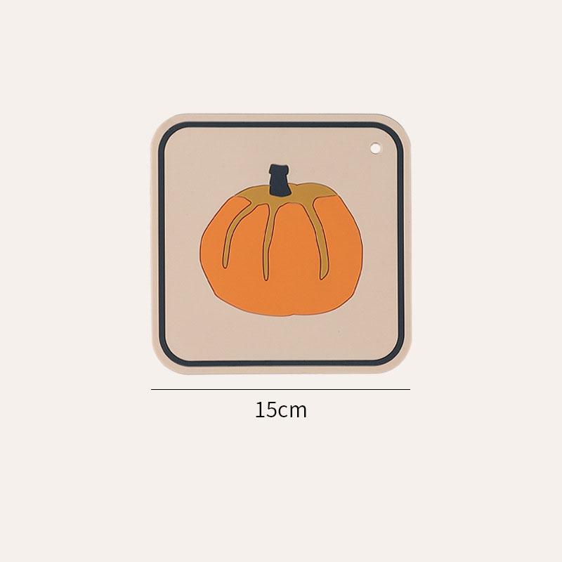 Подставка под стакан из силикона с рисунком тыквы и хурмы, нескользящие теплоизоляционные коврики для кружек, декор для обеденного стола, набор столовых приборов