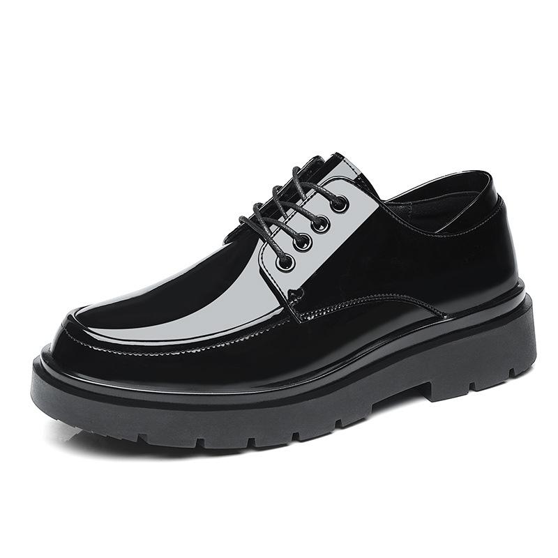 Мужская обувь лакированная кожаная обувь мужская повседневная обувь обувь для костюма для молодых мужчин черная с круглым носком кожаная обувь модная обувь