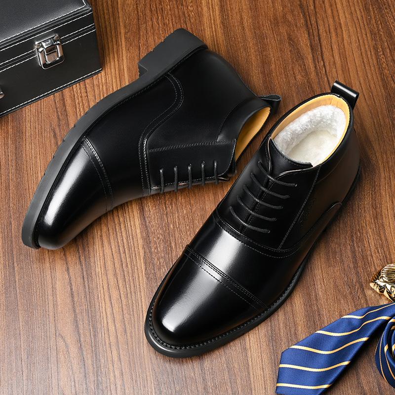 Меховые интегрированные трехсуставные мужские короткие ботинки кожаные ботинки высокие кожаные туфли модная мужская обувь зимние мужские ботинки 2025