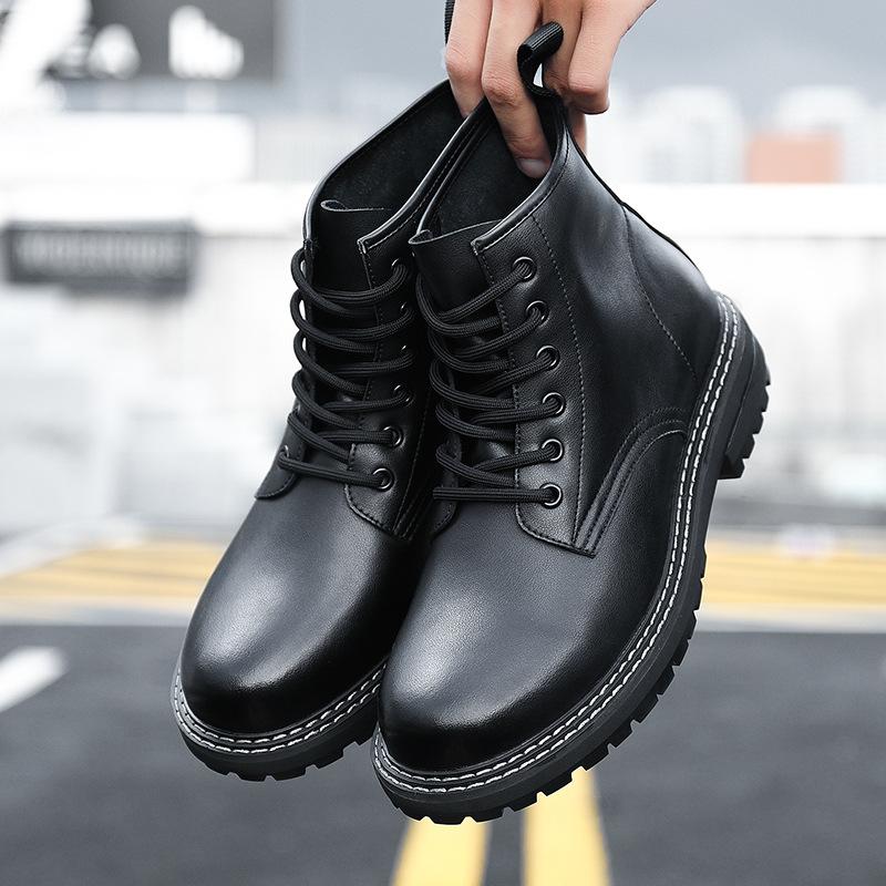 Осенне-зимние ботинки Мартин из коровьей кожи, мужские бархатные черные рабочие ботинки на толстой подошве, шнуровка, модные ботинки 2025 — купить товар онлайн с бесплатной доставкой по всему миру!