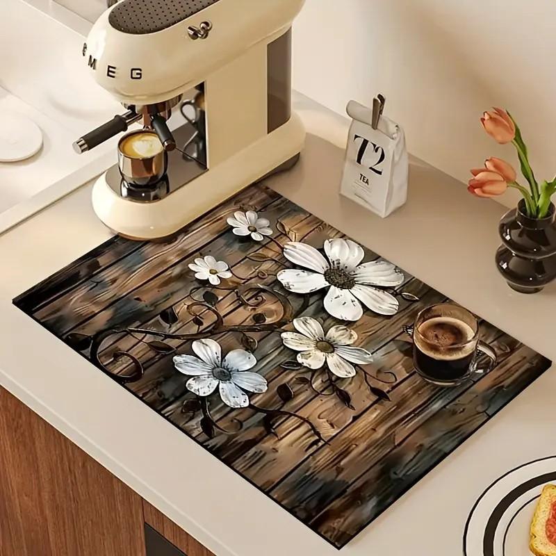Деревенский Цветочный Кухонный Коврик для Сушки Посуды Супер Впитывающий Быстросохнущий Нескользящая Резиновая Основа Скрывающий Пятна для Кофемашин — купить товар онлайн с бесплатной доставкой по всему миру!