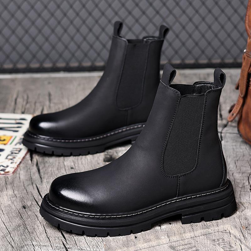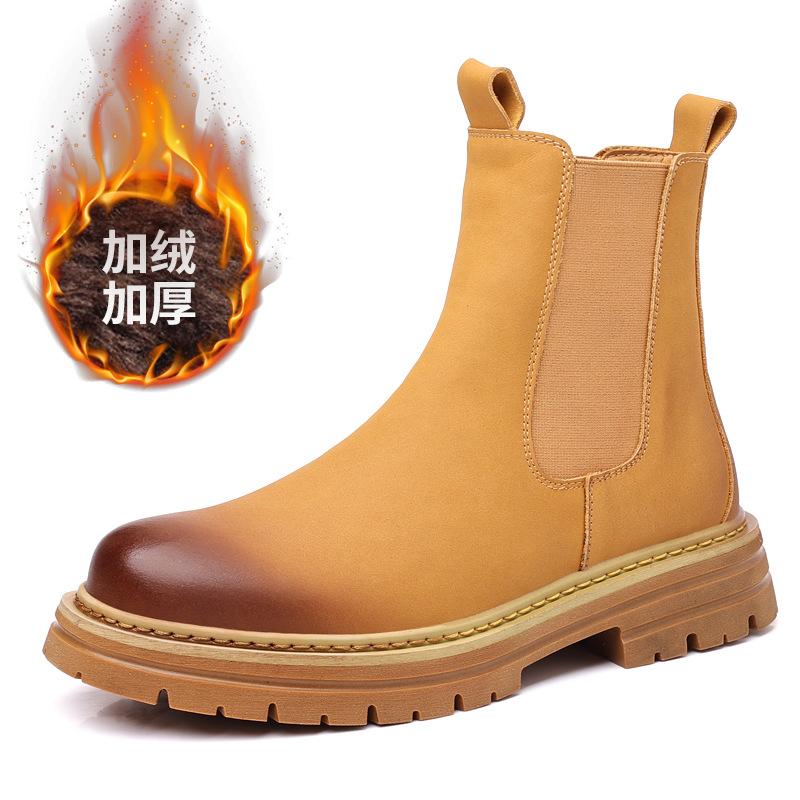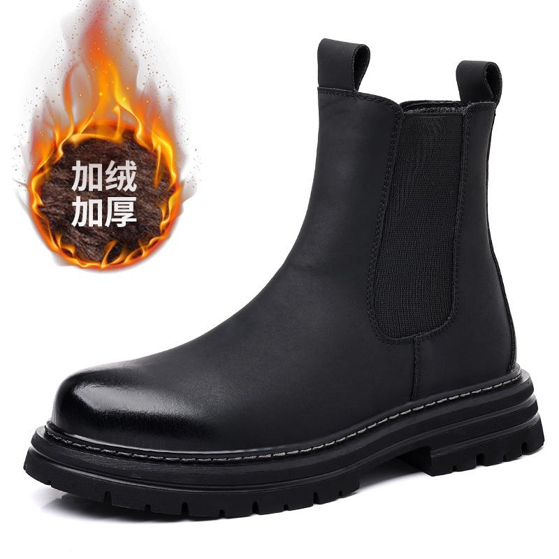 Мужские ботинки челси 2025 Осень и Зима Помощь Британские Дымчатые Ботинки Теплые Снежные Ботинки Черные Флисовые Ботинки Мартин Прилив