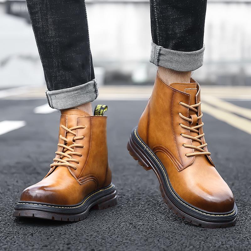 Модные ботинки Мартина на толстой подошве, мужские осенние высокие рабочие короткие ботинки, флисовые теплые ботинки на мягкой подошве, тренд — купить товар онлайн с бесплатной доставкой по всему миру!
