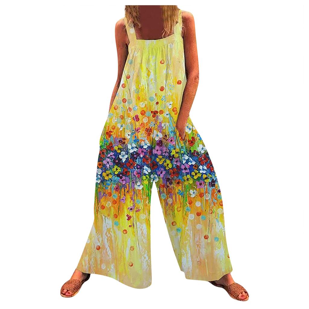 Женские комбинезоны, повседневные комбинезоны с широкими штанинами и принтом, комбинезоны без рукавов с карманами, наряды