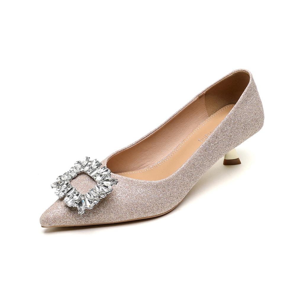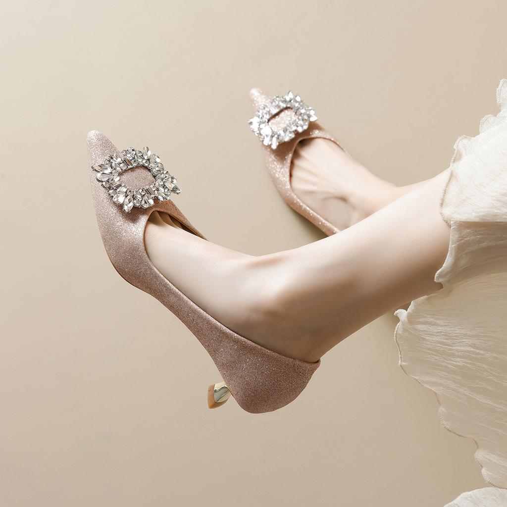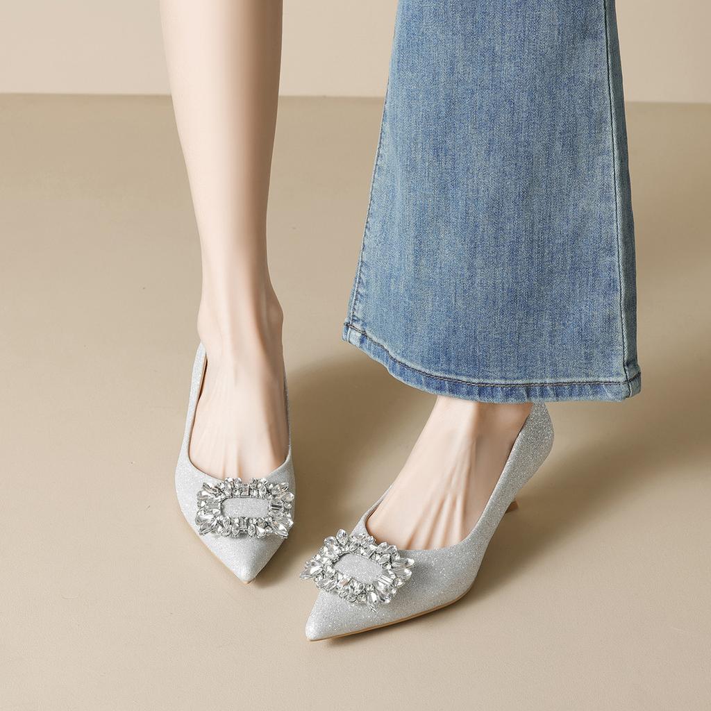 Остроносые туфли-лодочки женские с неглубоким вырезом, со стразами, на высоком каблуке, не утомляют ноги, с темпераментом, на тонком каблуке, хрустальные свадебные туфли