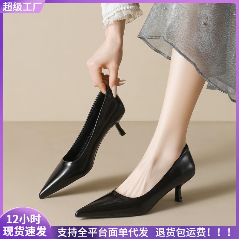 Остроносые туфли-лодочки женские на тонком каблуке черные рабочие туфли с мелким вырезом темпераментные туфли на высоком каблуке женские не устают