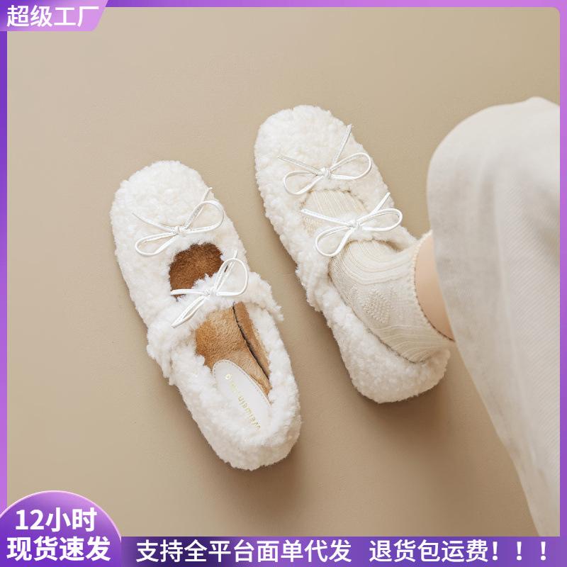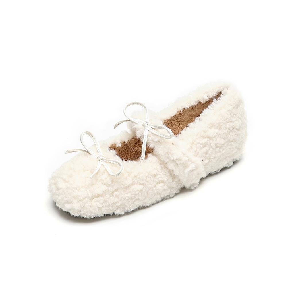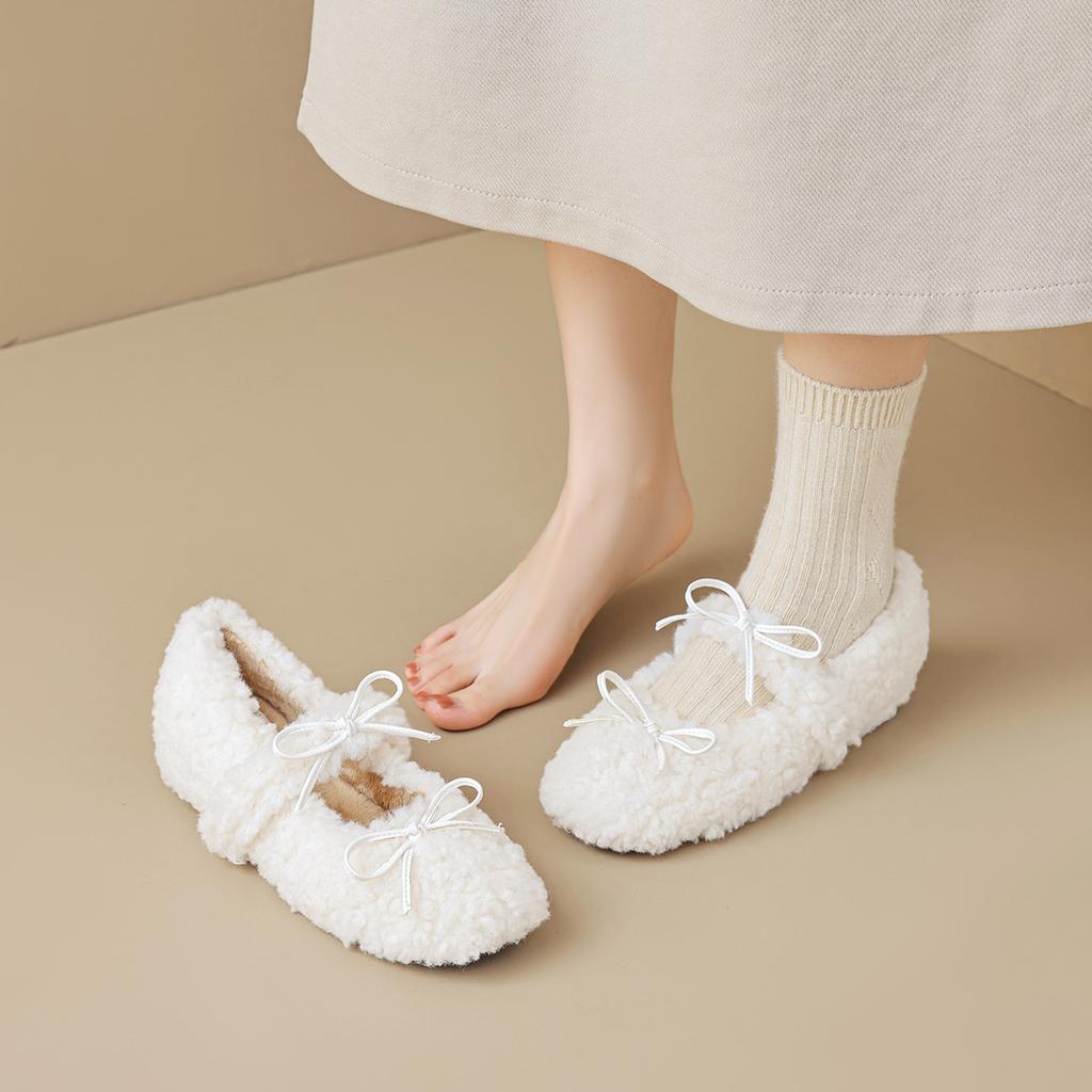 Женские зимние туфли из шерсти ягненка, белые, с бантом, на утолщенной подошве, туфли Мэри Джейн на плоской подошве