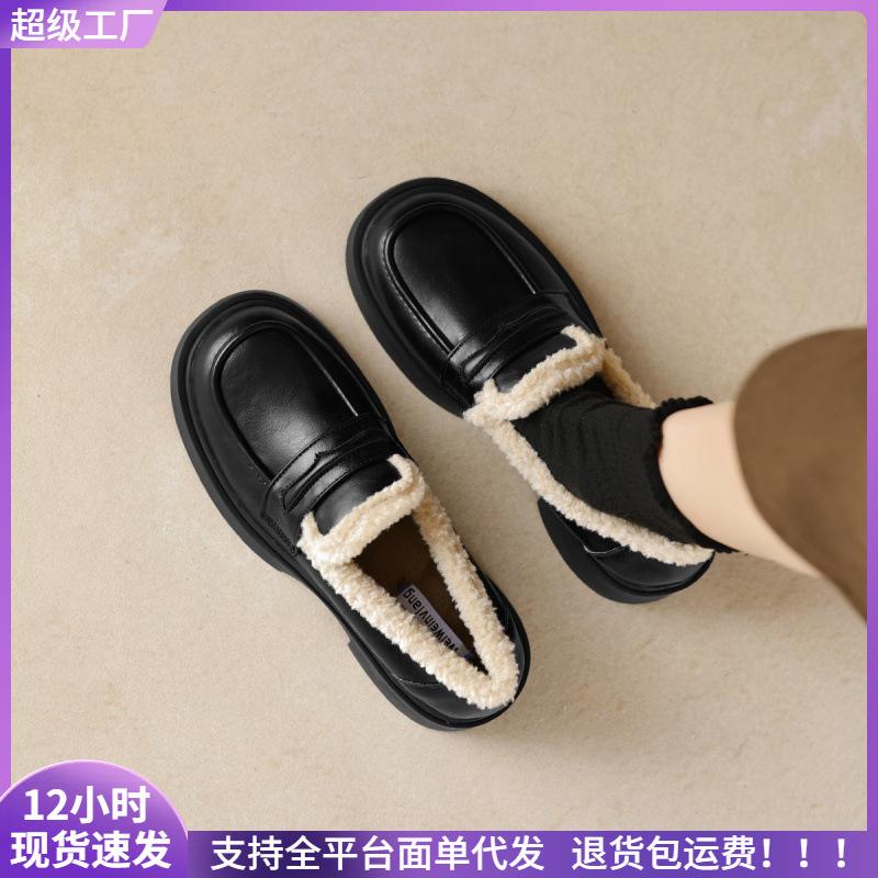 Флисовые женские теплые черные туфли на толстой подошве с одним ремешком, туфли на толстом каблуке, женские