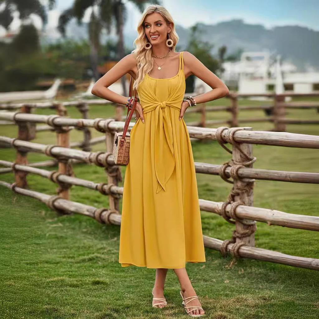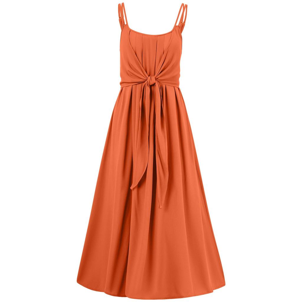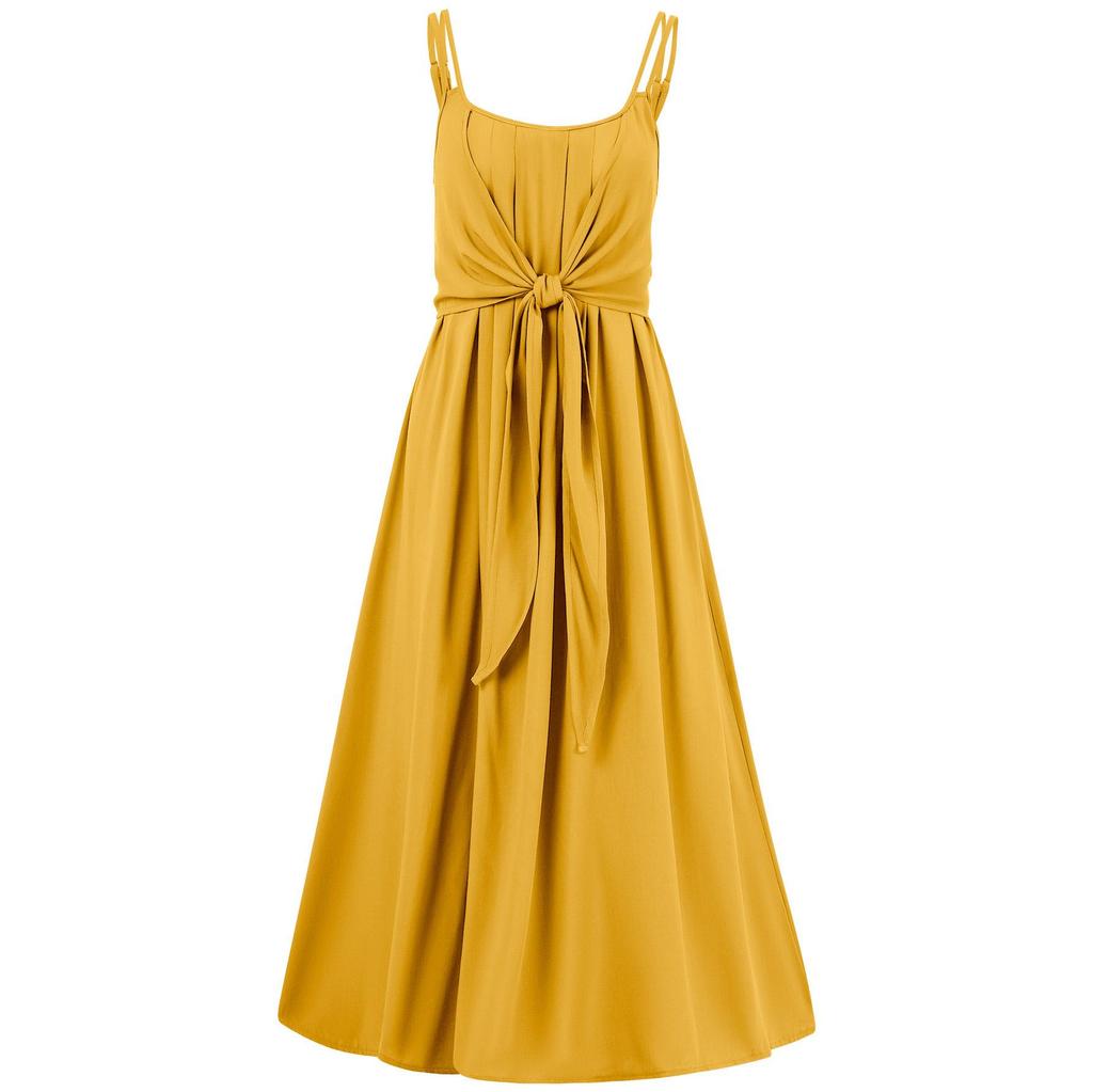 Женское весеннее однотонное платье-майка без рукавов с U-образным вырезом, без бретелек, летнее повседневное платье А-силуэта с высокой талией и завязками, длинные платья S-XL