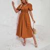 Летнее женское модное однотонное плиссированное платье с коротким рукавом длиной до щиколотки без бретелек