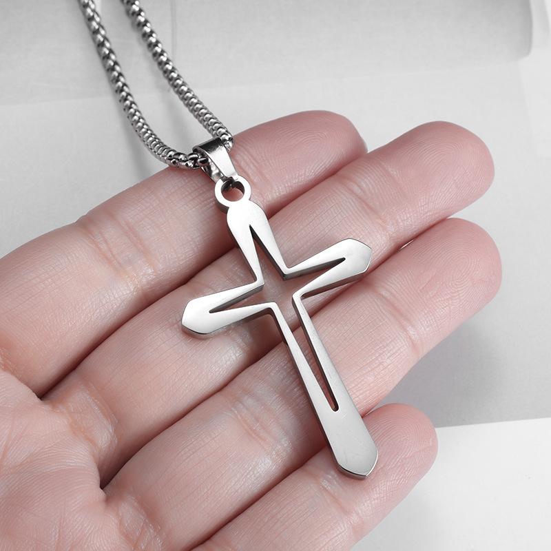 Новая Мода Мужская Подвеска-Ожерелье из Нержавеющей Стали с Полым Крестом Простое Счастливое Религиозное Ожерелье Ювелирное Изделие Подарок