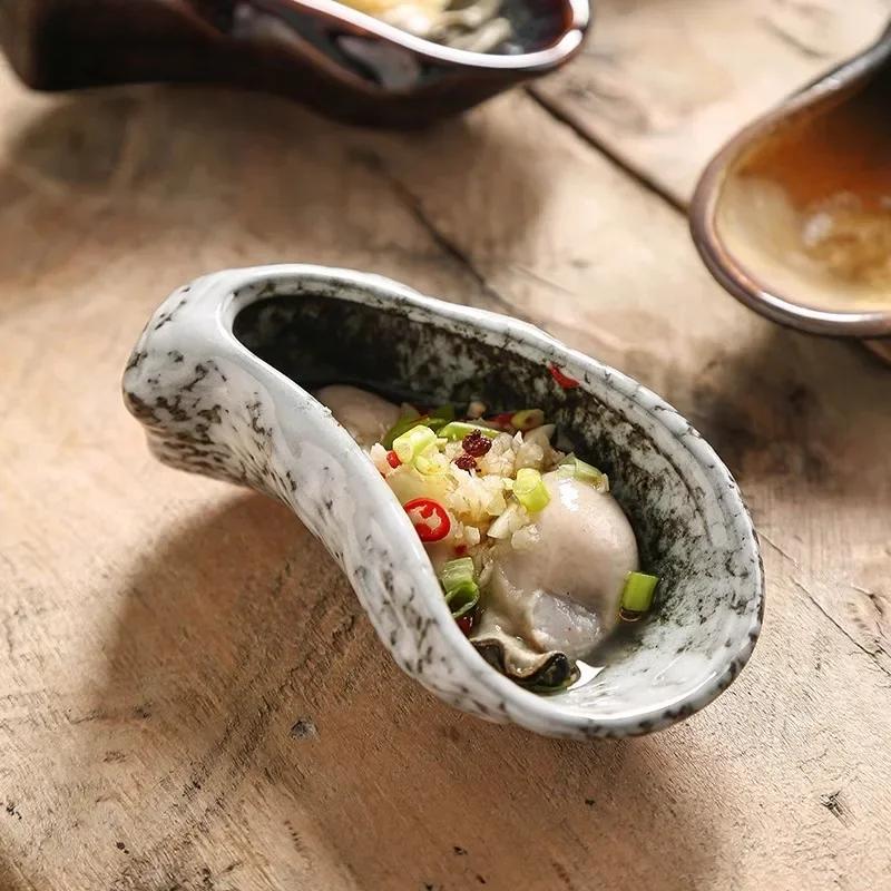 Ретро Керамическая Тарелка в Форме Устрицы Тарелка для Суши Десертная Тарелка Тарелка для Дим Самов Тарелки для Приправ Молекулярная Кухня Керамическая Посуда