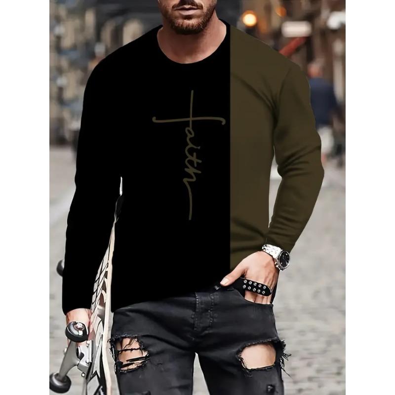 Модный тренд Мужская футболка с круглым вырезом и длинными рукавами с 3D-принтом креста Мужская повседневная футболка-пуловер Повседневный универсальный мужской топ S-5XL