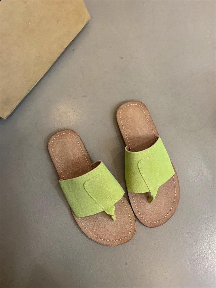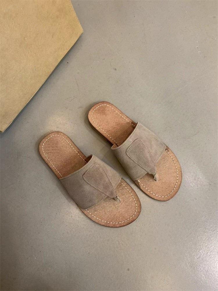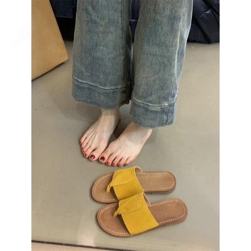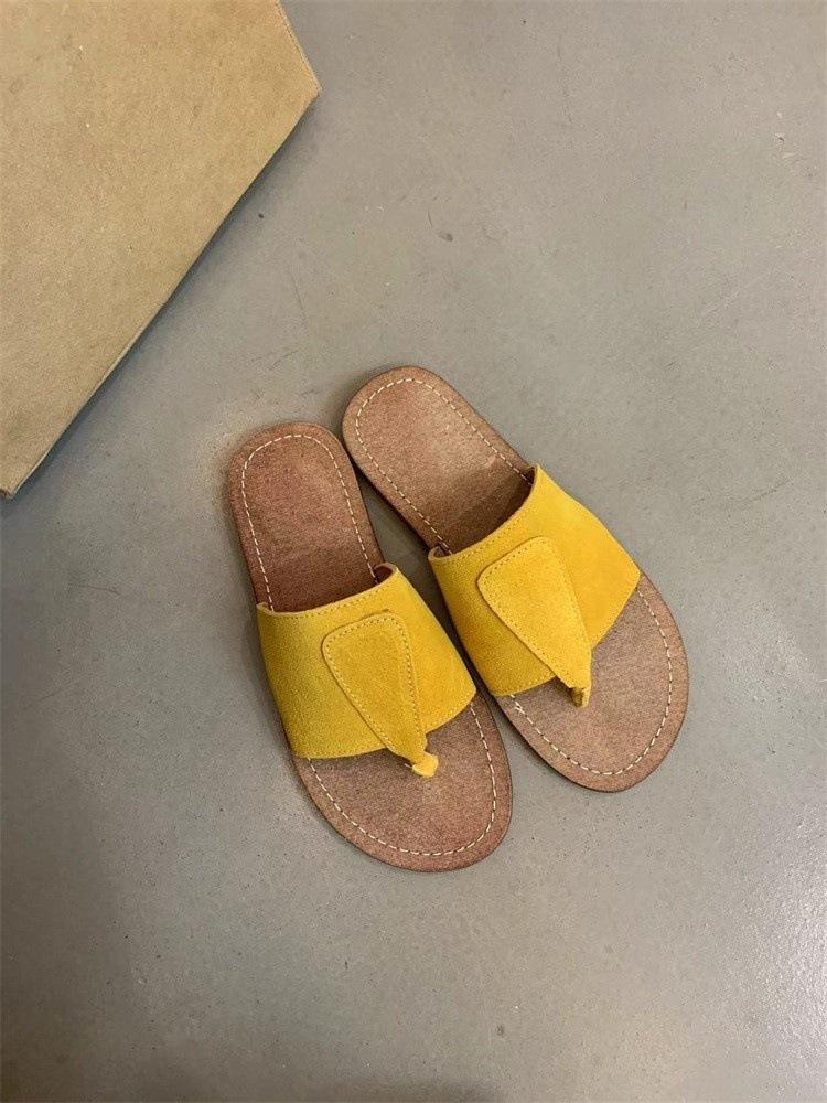 Ретро сандалии на одном слове женские Мори женская мода матовая кожа носок плоская подошва шлепанцы