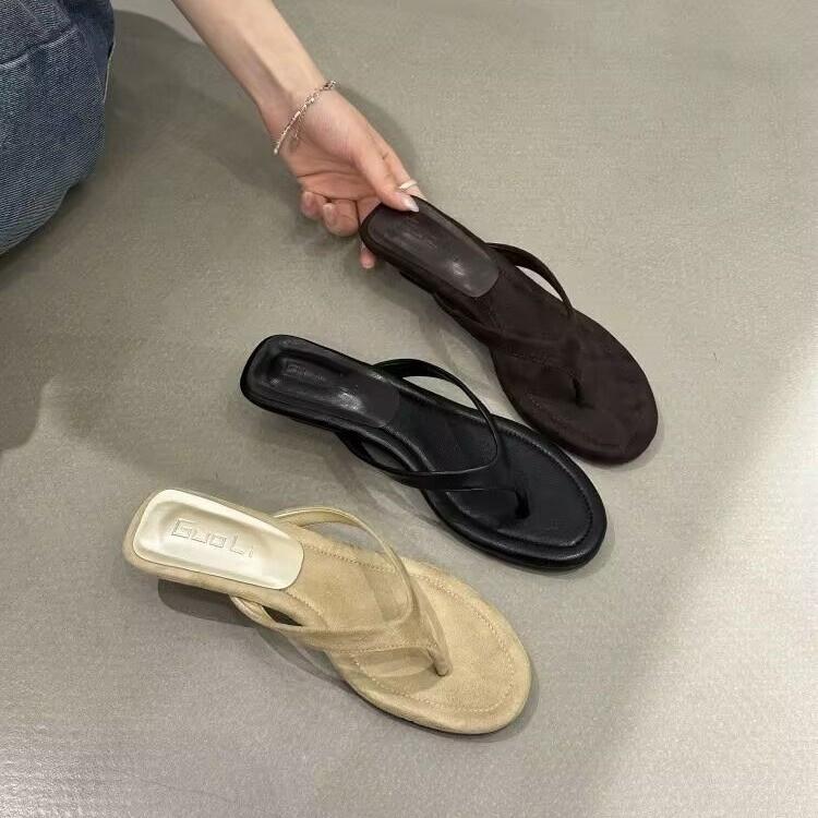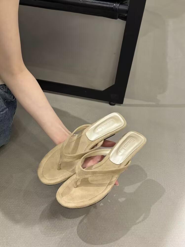 Высокое чувство высокого каблука лето новый носок высокий каблук тапочки универсальная верхняя одежда круглая голова танкетка шлепанцы женские
