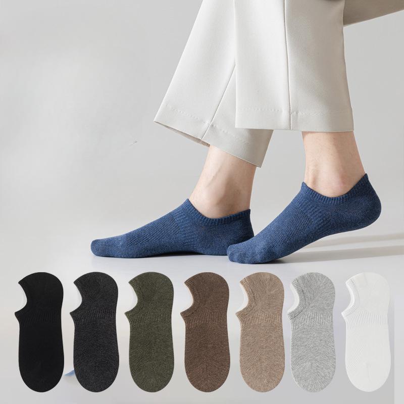 Мужские летние хлопковые сетчатые носки-невидимки, не сползающие, с низким вырезом