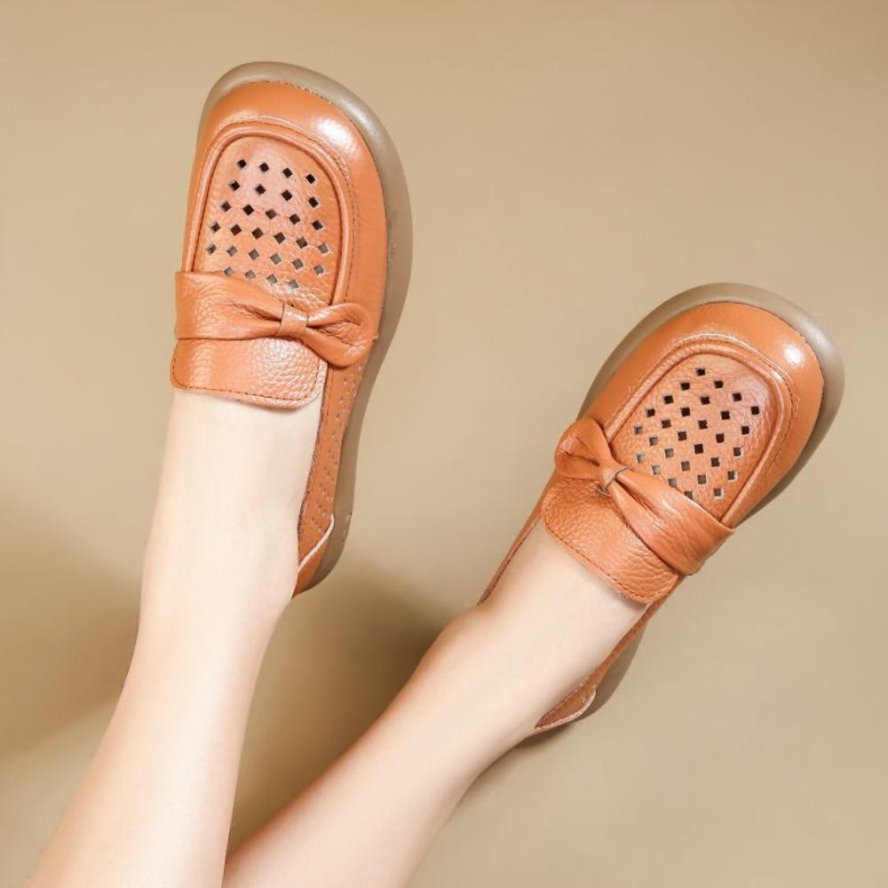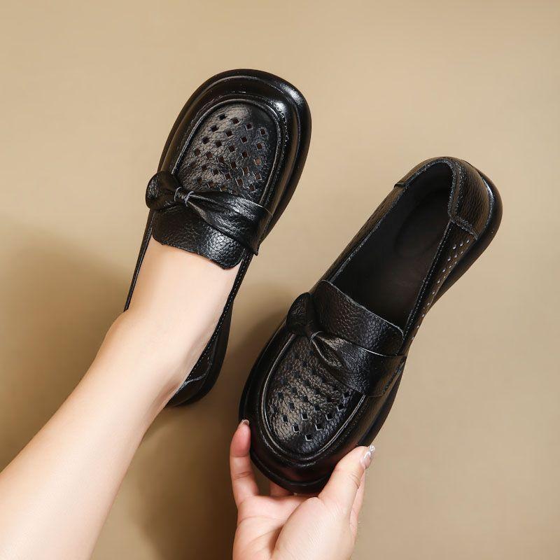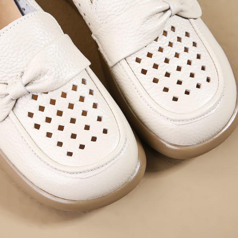 Летняя обувь из мягкой кожи с вырезами, Удобная поверхность из мягкой кожи, Мягкая подошва, Женские кожаные сандалии на плоской подошве