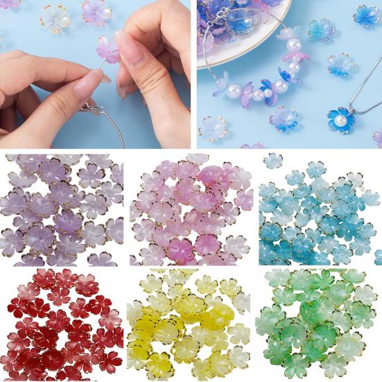 50 шт. Акриловые бусины в виде цветков сакуры, позолоченные бусины-разделители в виде цветов, DIY, ручная работа, для изготовления колье, браслетов, ювелирных изделий, цветочные шармы с 5 лепестками