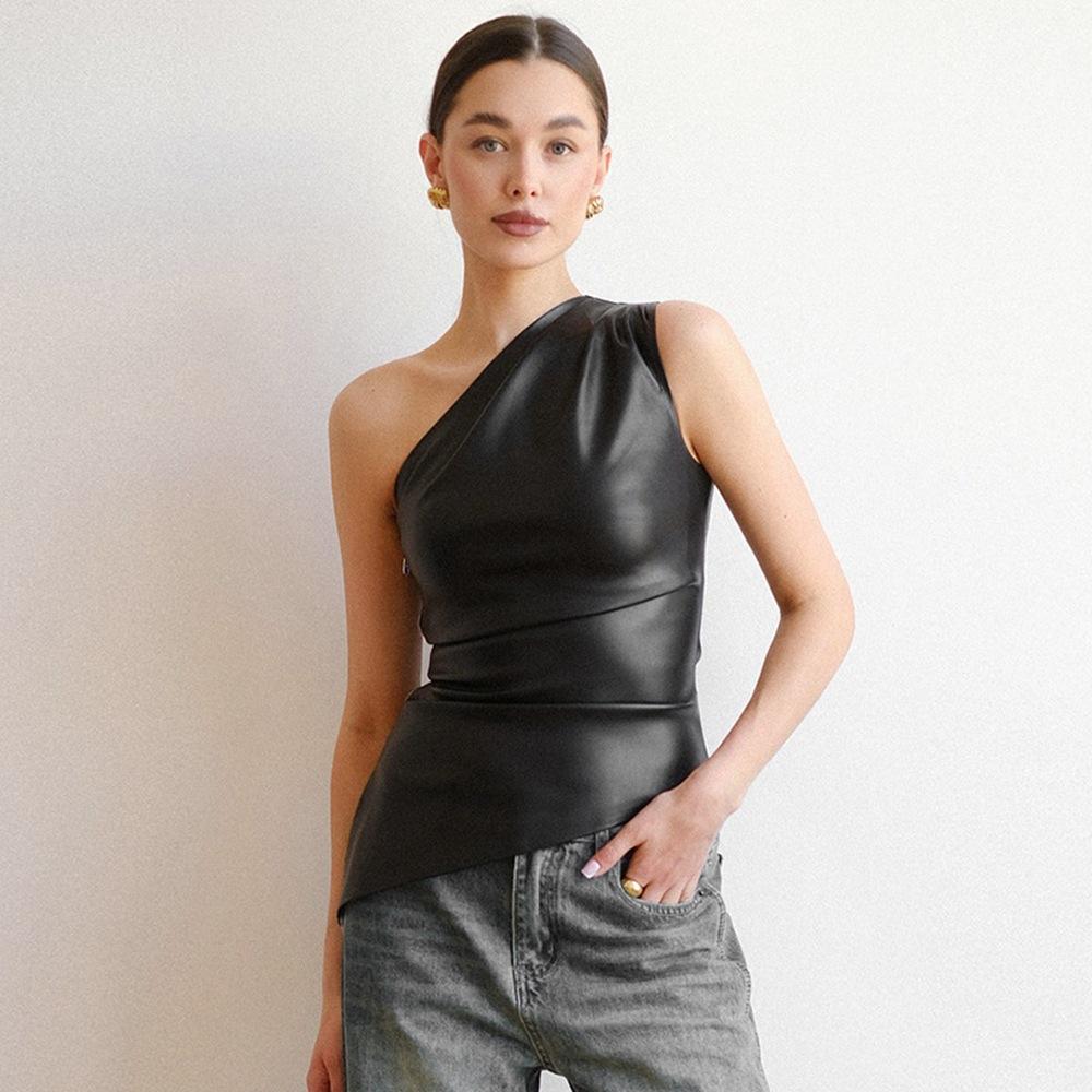 Женский одноплечевой жилет без рукавов, осенняя новинка, однотонный, облегающий, с диагональным вырезом горловины, на молнии, облегающий топ