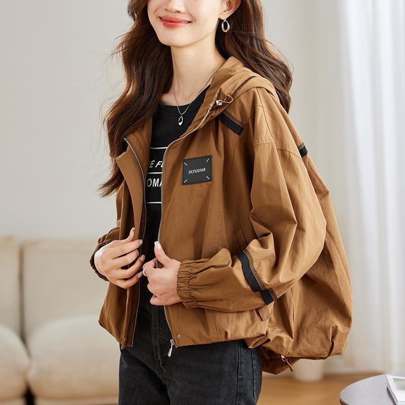 Женская куртка-ветровка с капюшоном, осенняя, нового дизайна, свободного кроя, спортивная, рабочая, топ для женщин
