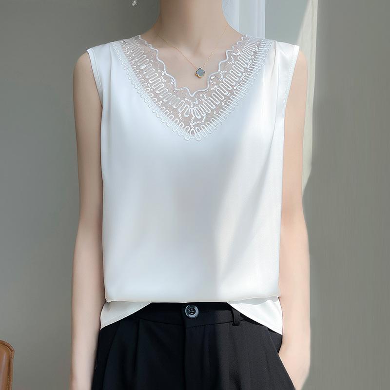 Кружевной цветочный V-образный вырез атласный жилет на бретелях для женщин, утягивающий ацетатный однотонный летний новый базовый топ без рукавов — купить товар онлайн с бесплатной доставкой по всему миру!