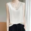 Кружевной цветочный V-образный вырез атласный жилет на бретелях для женщин, утягивающий ацетатный однотонный летний новый базовый топ без рукавов