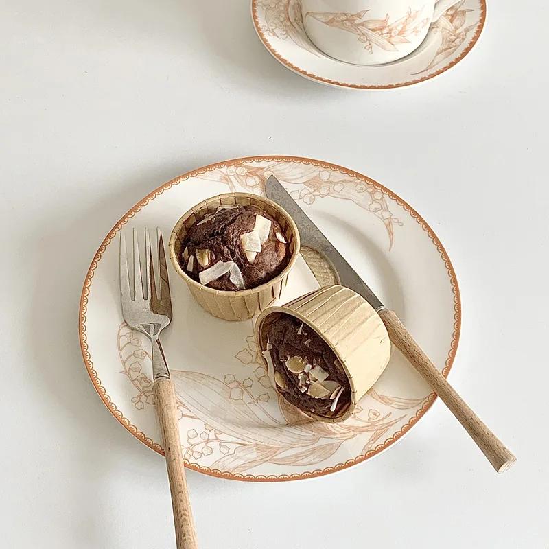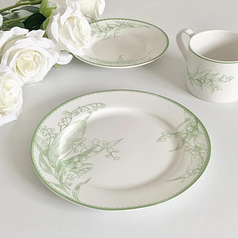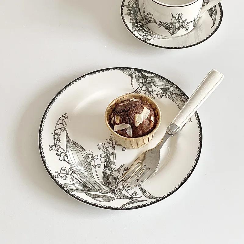 Керамические тарелки 8 дюймов Обеденные тарелки Суповая миска Завтрак Цветочный узор Фарфоровая посуда для дома Салатница Блюдо для стейка Кухонная посуда