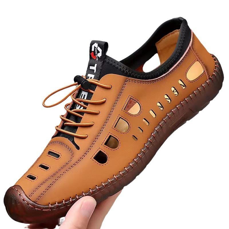 Летние мужские повседневные универсальные сандалии, обувь с отверстиями, износостойкая подошва из говяжьей кожи, удобная мягкая подошва, дышащая обувь, новинка