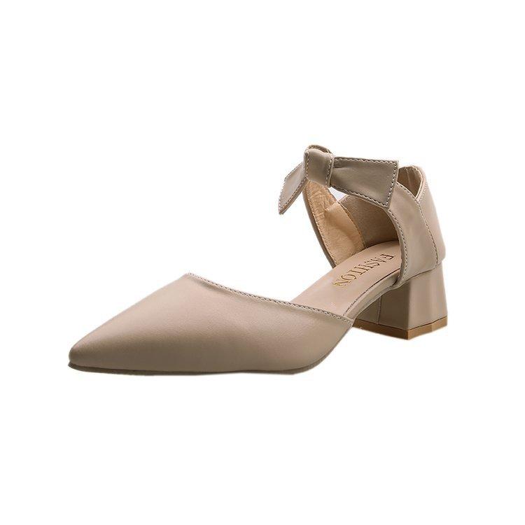 Весенне-летняя новая женская обувь корейская версия толстый каблук острый носок полый бант одинарная обувь модные высокие каблуки