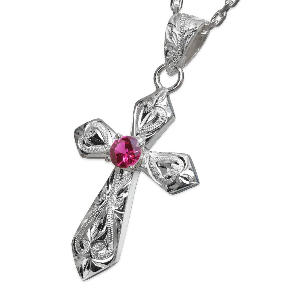 ◆Мы принимаем подарочную упаковку. Если вы хотите, чтобы ваш товар был упакован в подарочную упаковку, пожалуйста, проверьте настройку подарка на экране корзины и выберите желаемую упаковку из вариантов упаковки.. ◆Если у вас есть какие-либо вопросы, пожалуйста, свяжитесь с нами со страницы продавца. [Номер запроса: [CG-SP2840] BYTHESEA Гавайское ювелирное ожерелье, камень июля, синтетический рубин, бесплатная гравировка, серебро 925 пробы, крест, мужское, женское, цепочка, длина 45 см