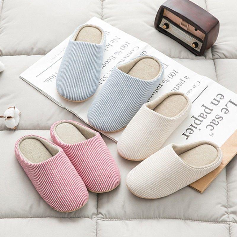 Осень и зима Японский стиль домашние комнатные мягкая подошва нескользящие бесшумные мужские и женские хлопковые тапочки бесшумные для послеродового периода напольные домашние тапочки