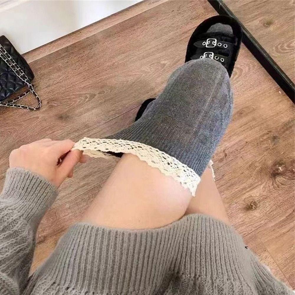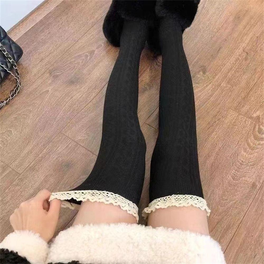 Вязаные длинные носки чулки в японском стиле модные носки до бедра осень зима