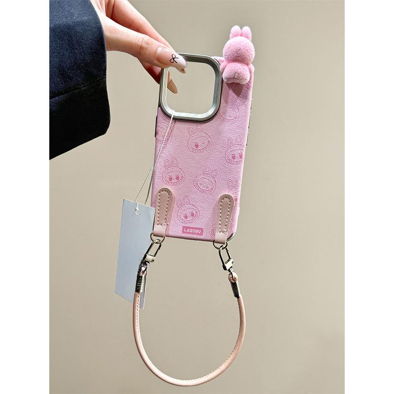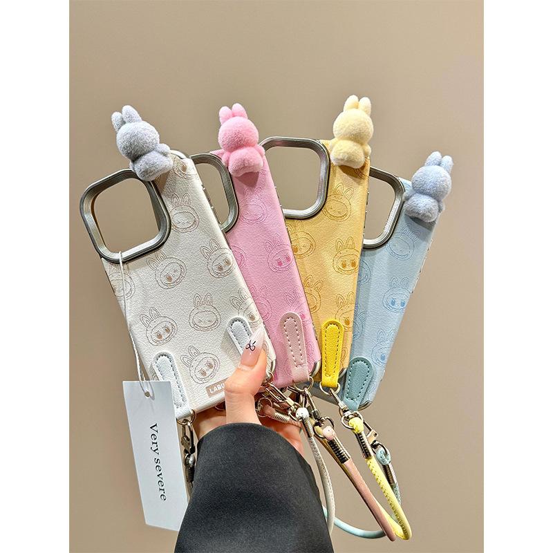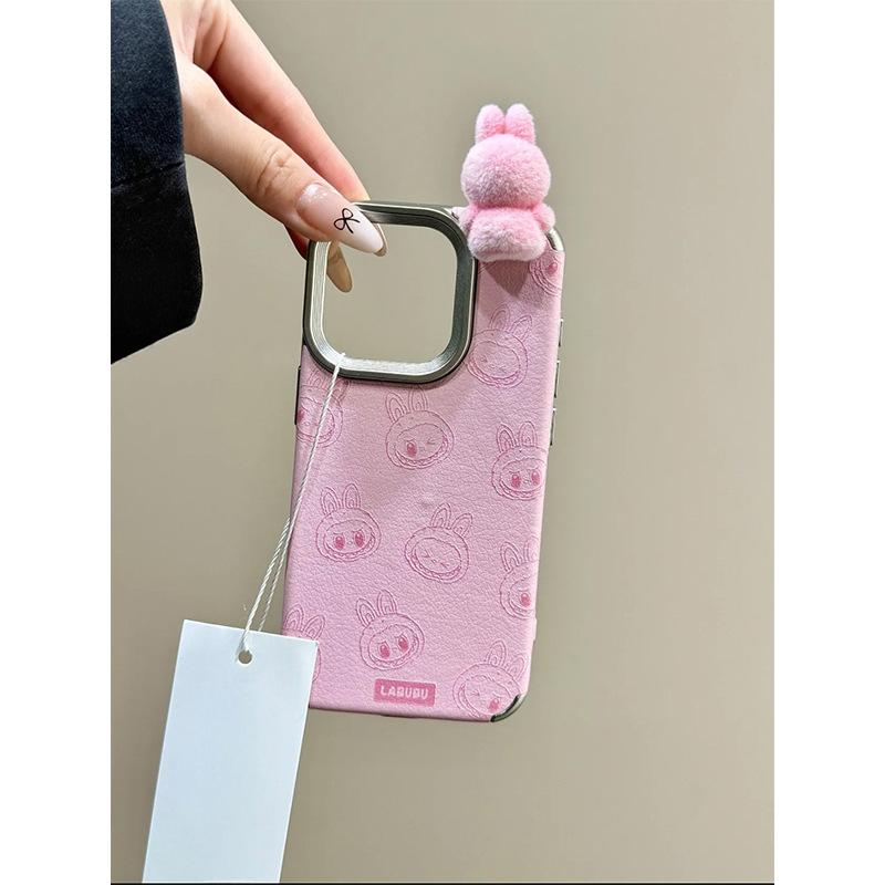 Милый трехмерный Labubu конфетного цвета, подходит для чехла для мобильного телефона Apple 16promax iPhone 15 Плюшевый 13