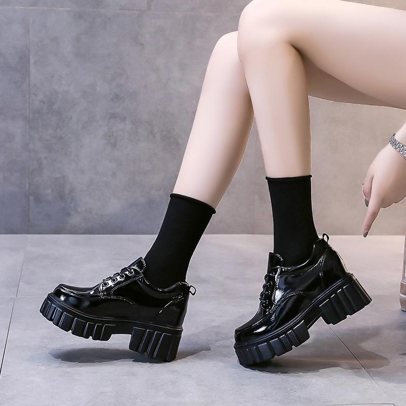 Британский стиль толстая подошва внутренняя высота увеличивающая маленькая кожаная обувь женская универсальная толстый высокий каблук весна и осень jk обувь модная обувь
