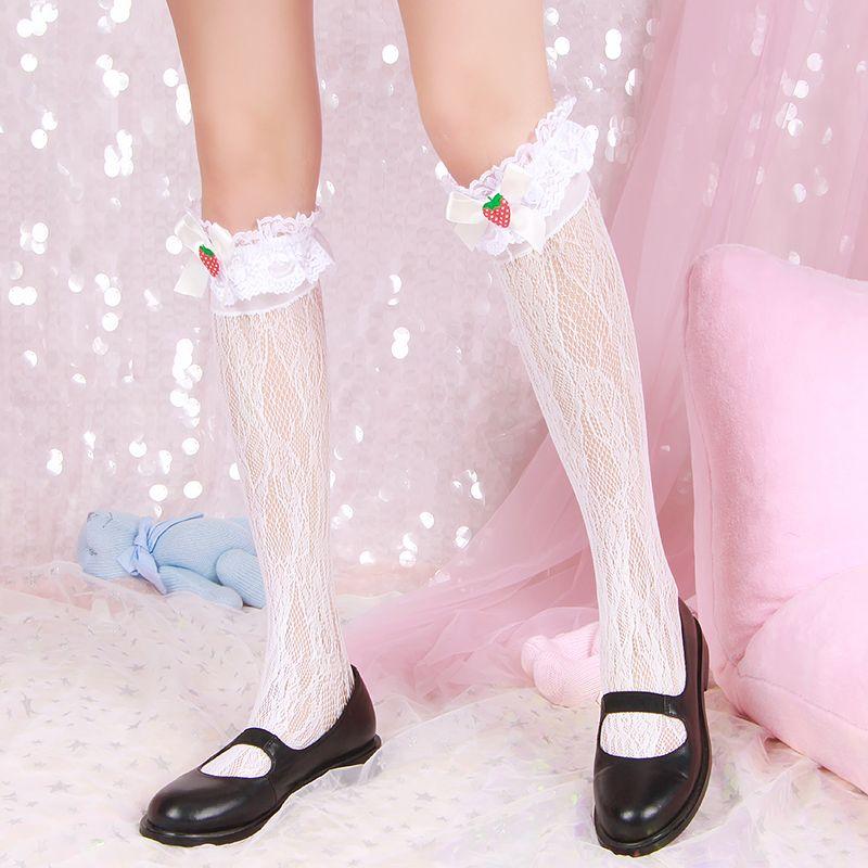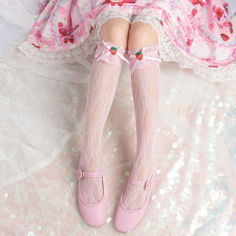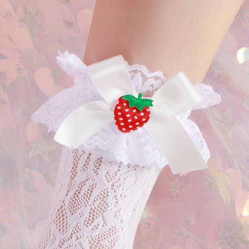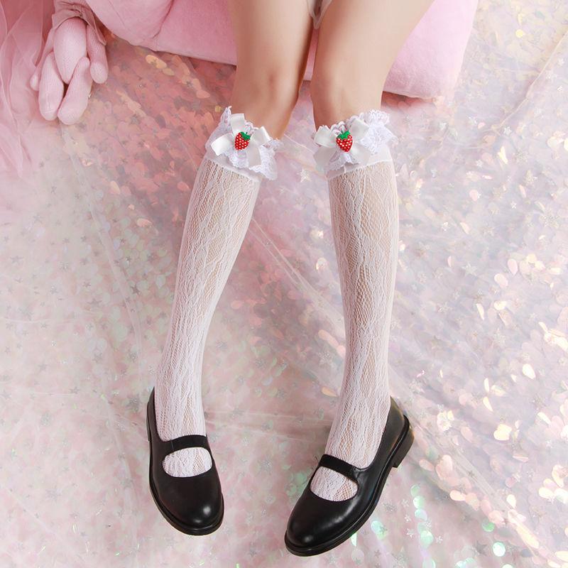 Японские Лолита Милые Клубничные Бантики Кружева Рюши Гольфы до колена | Девушка Студентка Гольфы до икры для женщин