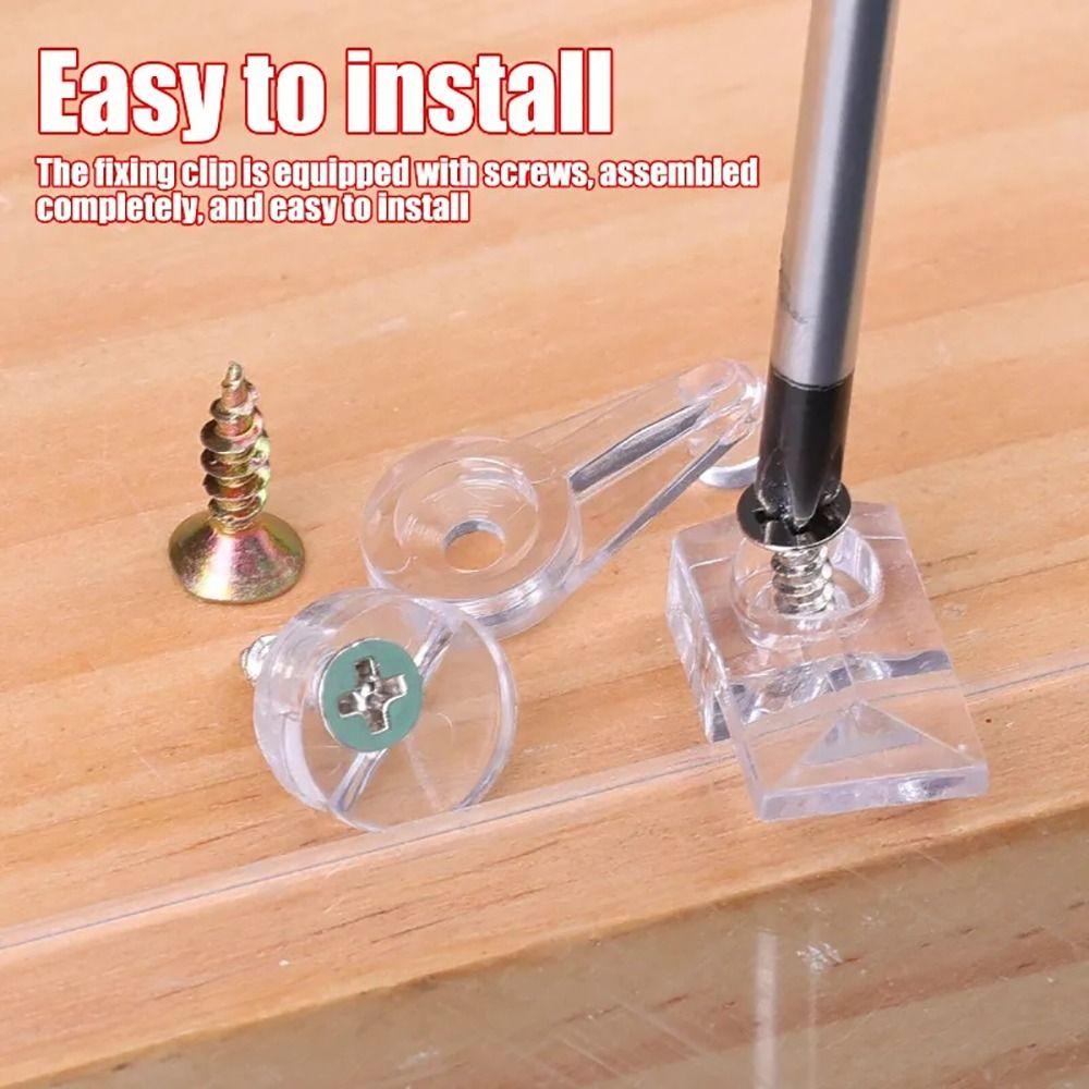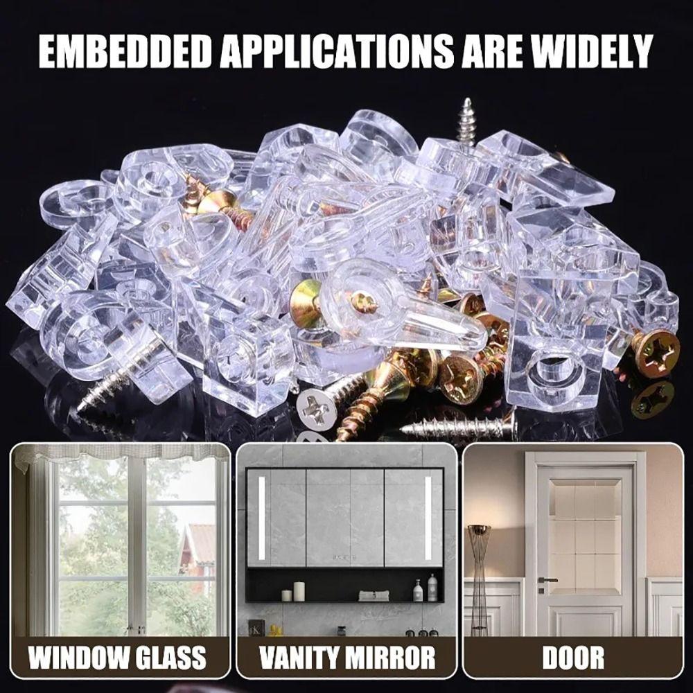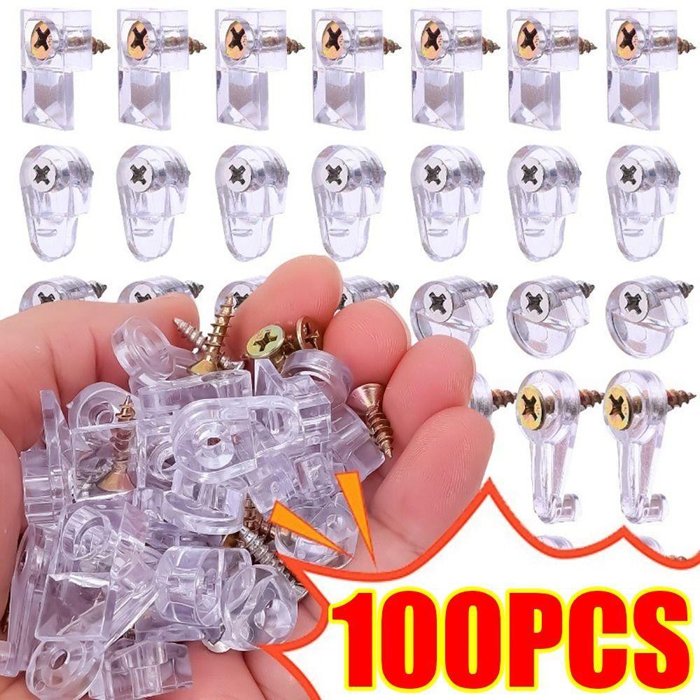 100Pcs Clear Glass Fixing Clip Kit with Screws Hanging Hardware Tools for Fixing Glass