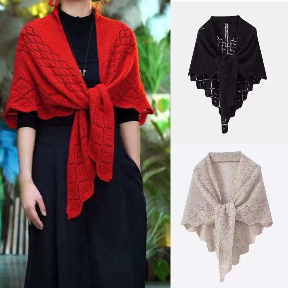 Полый вязаный платок Простой тонкий верхний слой Пальто Тренд Треугольный шарф Шаль Весна Осень