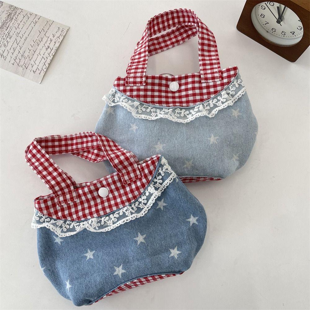 Sweet Fresh Lace Handbag Korean Style Cute Coin Purse Vintage Denim Plaid Handbag Students