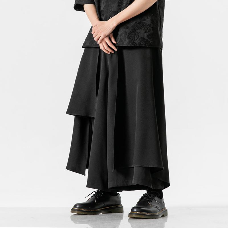 Мужские черные брюки гаремы в китайском стиле, уличные брюки, мужские черные брюки-юбка ханьфу, летние мужские повседневные брюки с необычным дизайном