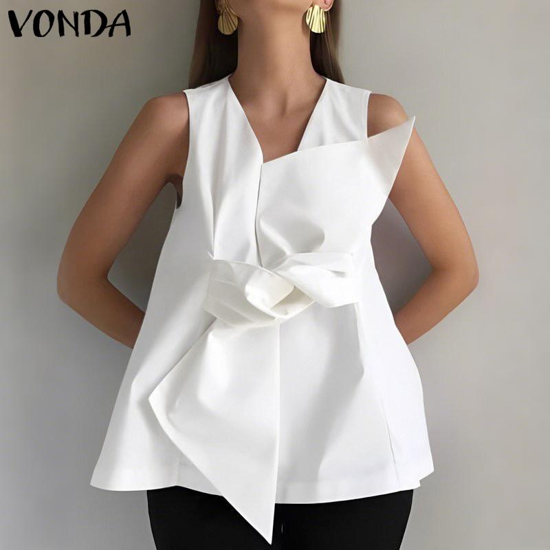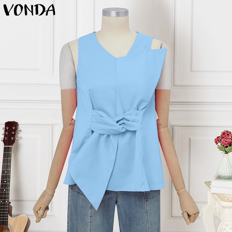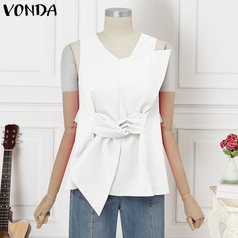 VONDA Женские майки без рукавов с круглым вырезом, с узлом спереди, пэчворк, однотонные
