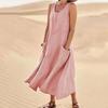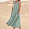 Летнее женское платье из хлопка и льна без рукавов с круглым вырезом и карманами — купить товар онлайн с бесплатной доставкой по всему миру!